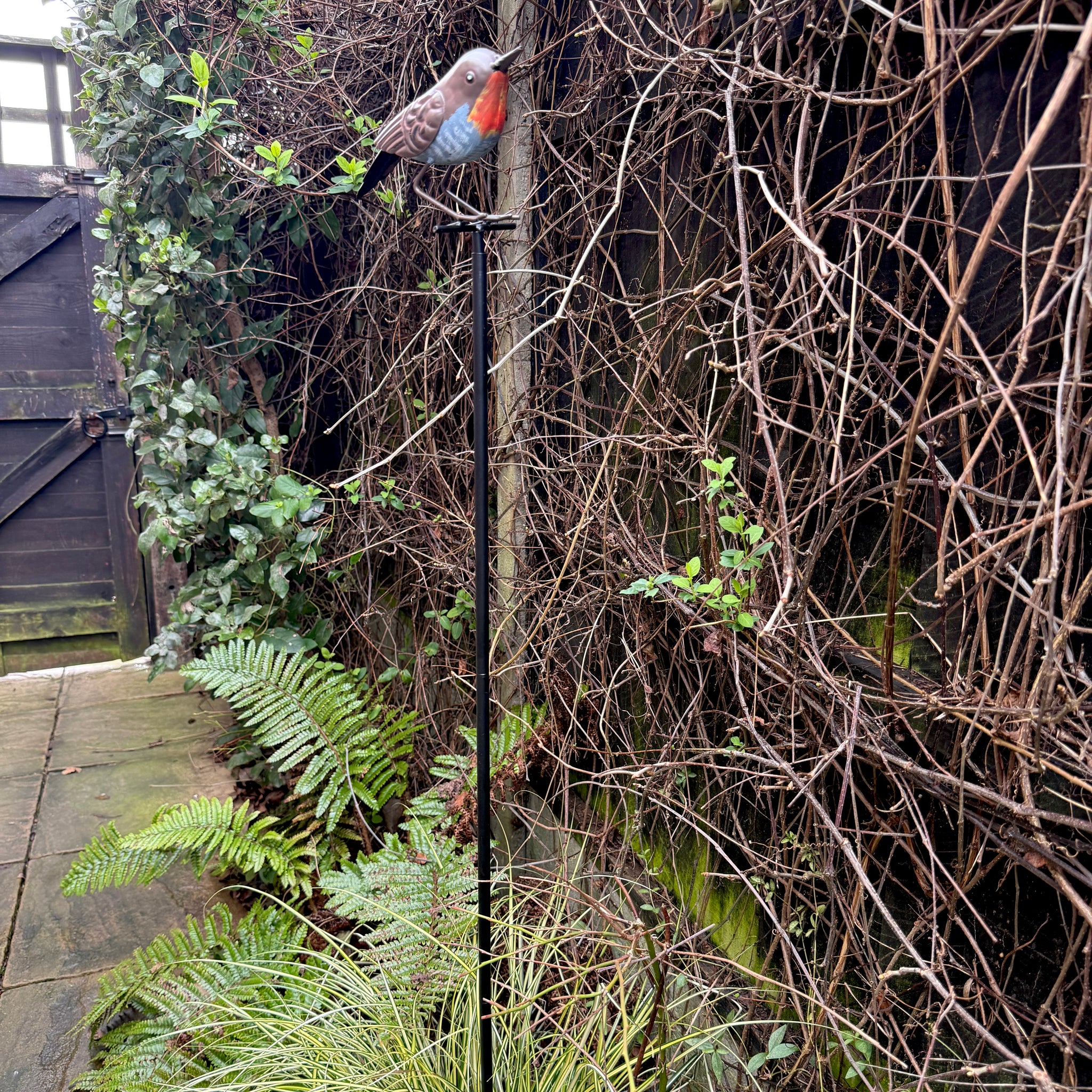 Add a charming focal point to your outdoor space with this beautifully crafted robin garden ornament on a pole. Inspired by one of Britain’s most loved garden birds, this beautiful metal garden sculpture combines artistic detail with timeless appeal, making it a lovely addition to any garden, patio or balcony.